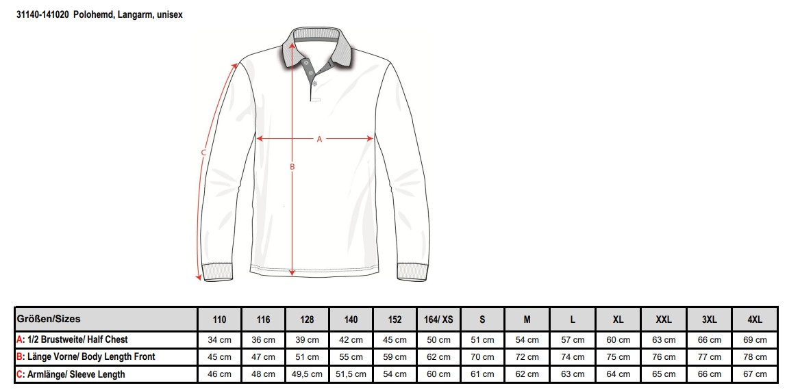 Polohemd, langarm, Unisex, mit gesticktem Schullogo,